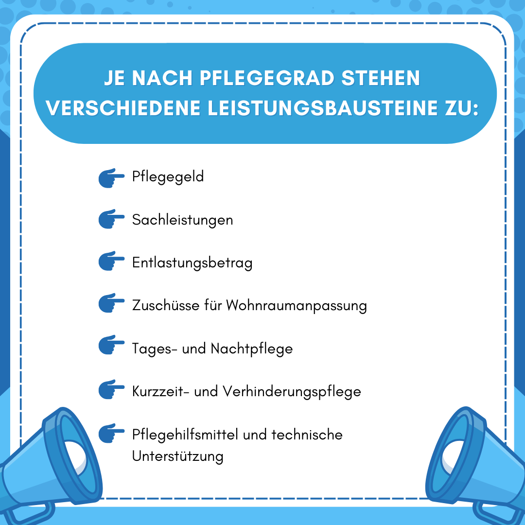 - Finanzielle Hilfen wie monatliches Pflegegeld.